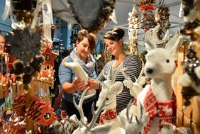 Jetzt schon an das große Familienfest denken – die WeihnachtsWelt ist in diesem Jahr noch größer und schöner und lässt die Vorfreude steigen. Weihnachtsgestecke, Kerzen und Pyramiden sorgen für weihnachtliches Ambiente, Baumkuchen, Stollen, Quarkkrapfen und Glühwein verführen zum Probieren. Auch das eine oder andere Geschenk lässt sich bei vielen Händlern auf der Messe finden, während die kleinen Messebesucher mit der Kindereisenbahn um den großen, geschmückten Weihnachtsbaum fahren oder ihre gemalten oder geschriebenen Wünsche an den Wunschzettelbaum hängen.