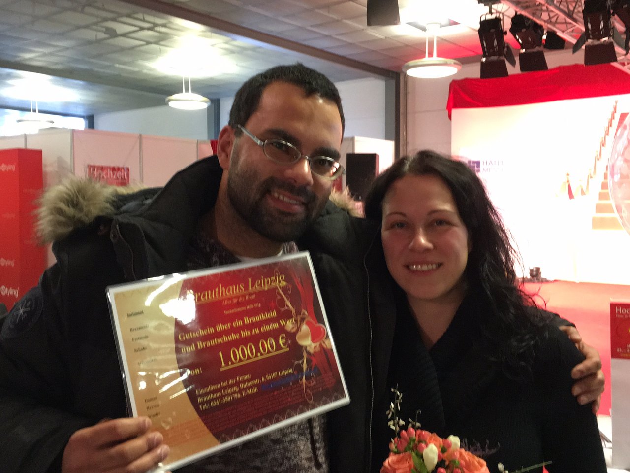 Groß war die Beteiligung an der Tombola; Preise von Juwelier Junghähnel, Showtime Juwelier, Mary Kay Cosmetics, Palais S, Feierdeko.com und Festtagsfloristik og mere wurden an beiden Messetagen verlost. Anna Schuhmann (4 Jahre) machte am Samstag ein kurz vor ihrer Hochzeit im Mai stehendes Paar aus Halle (Saale) glücklich: Kathrin Hädicke (27) und Christian Breiter (28). Sie, Mitarbeiterin an der Medizinischen Fakultät Leipzig, und er, Pharmazie-Student an der Martin-Luther Universität, freuten sich über Gutscheine von Pyroevent Feuerwerk und Foto Faust. Den Hauptpreis, einen Gutschein für ein Brautkleid inklusive Brautschuhen im Wert von bis zu 1 000 € von Brauthaus Leipzig - Alles für die Braut konnten Dajana Thiele (34) und Leandro Felipe Gambôa mit nach Hause nehmen. Hier war es Maja Hirschfeld (3 Jahre), die als Glücksfee nicht nur die Zuschauer mit ihrem Charme verzauberte, auch die Diplomanglistin und der Diplomsoziologe strahlten - beide übrigens wollen im Juli heiraten.